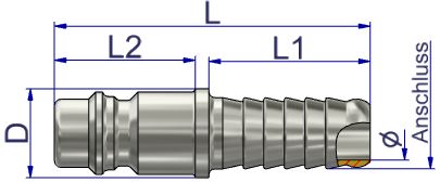 Beschreibung Nominal width 7.8 mm, brass, surface: nickel plated, single shut off, hose connection, LW10, seal: NBR (Perbunan) |