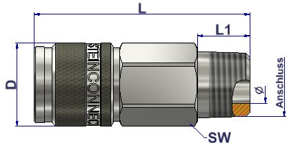 Technique: One-hand coupling with automatic 6-point locking. Ball locking system with spring-loaded release sleeve. Disconnect by pushing the release sleeve back into the direction of the connection. The valve will return to its starting position and push the plug out of the coupling.