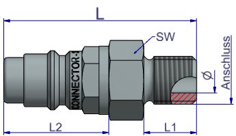 Technique: Two-hand coupling with automatic 5-point locking. Locking elements are balls that are locked by a spring-loaded unlocking sleeve. The uncoupling process is initiated by pushing back the unlocking sleeve into the direction of the connection. The valve moves back to its original position closes the couling and pushes the plug out of the coupling. All couplings in this series have an additional lock nut to secure the coupling against accidental uncoupling. The positive connection between the coupling and the plug allows to transmitted torsional forces.