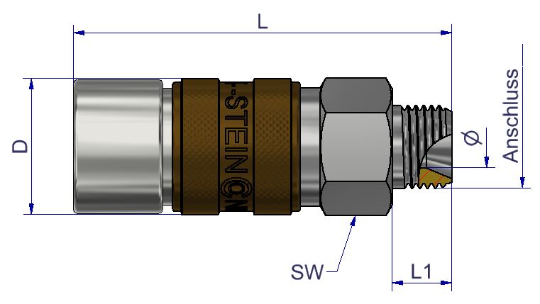 Technique: This one-hand coupling with automatic 5-point locking is used where a mixing up of medias has to be ruled out. Achieved this is done through a coding with simultaneous color labelling. Ball locking system with spring-loaded release sleeve. Disconnect by pushing the release sleeve back in the direction of the connection. The valve will return to its starting position and push the plug out of the coupling.