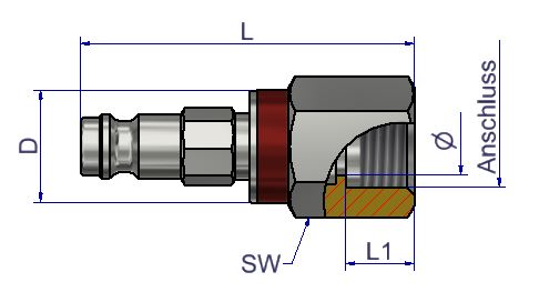 Beschreibung Nominal width 5.0 mm, brass, surface: nickel plated, single shut off, male thread DIN228/1, 1/4, seal: NBR (Perbunan) |