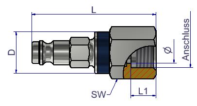 Beschreibung Nominal width 5.0 mm, brass, surface: nickel plated, double shut off, male thread DIN228/1, 1/8, seal: NBR (Perbunan) |