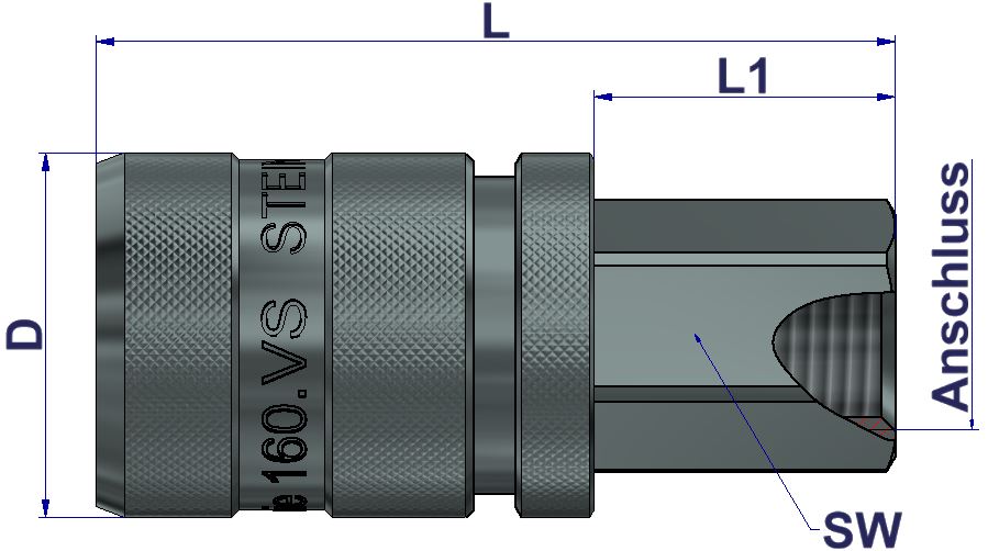 Technische Daten: Werkstoffausführung Kupplung: Ventil aus Messing. Kupplungskörper, Entriegelungshülse und Sicherungsmutter aus Stahl verzinkt. Federelemente aus Stahl 1.4310. Kugeln aus rostfreiem Stahl 1.4034. Dichtungen aus FPM (Viton). Werkstoffausführung Stecknippel: Stahl verzinkt.